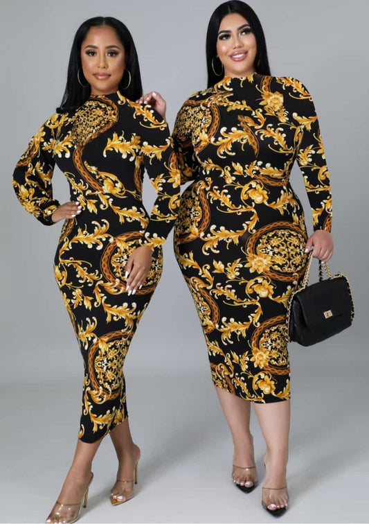Gold and Black Beaded Bodycon Evening Pron Gown