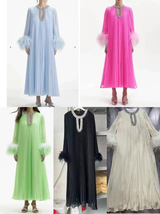 GetGraceGift Pleat Feather Diamonds Spliced Luxury Dresses