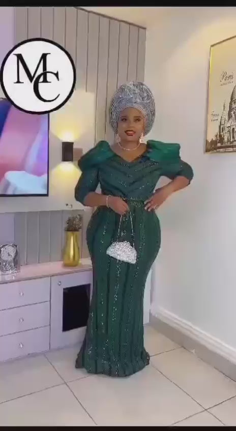 Discover the perfect blend of comfort and style with the GetGraceGift long Green Occasional Dress. Made from high-quality materials and adorned with intricate sequin detailing, this dress is the ultimate statement piece for any special occasion. Experience luxury and elegance with every wear.